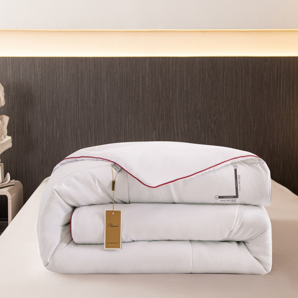 Одеяло: Украшено кантом по периметру, имеет петли для фиксации пододеяльника