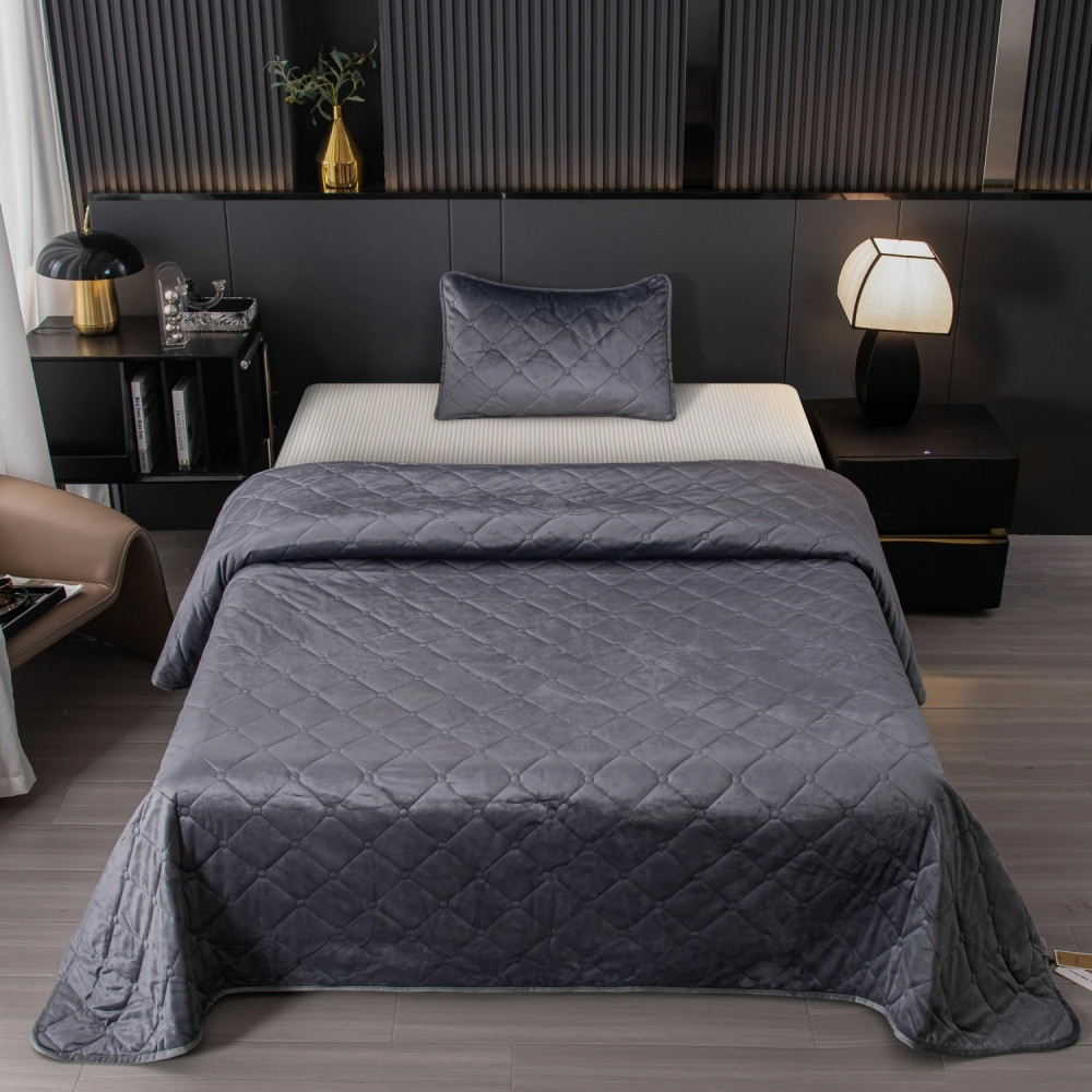 Покрывало украшено стежкой "Ромб" с металлизированной нитью, что подчеркнёт стиль постели и окружающего её пространства.