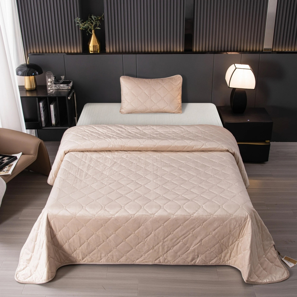 Покрывало украшено стежкой "Ромб" с металлизированной нитью, что подчеркнёт стиль постели и окружающего её пространства.