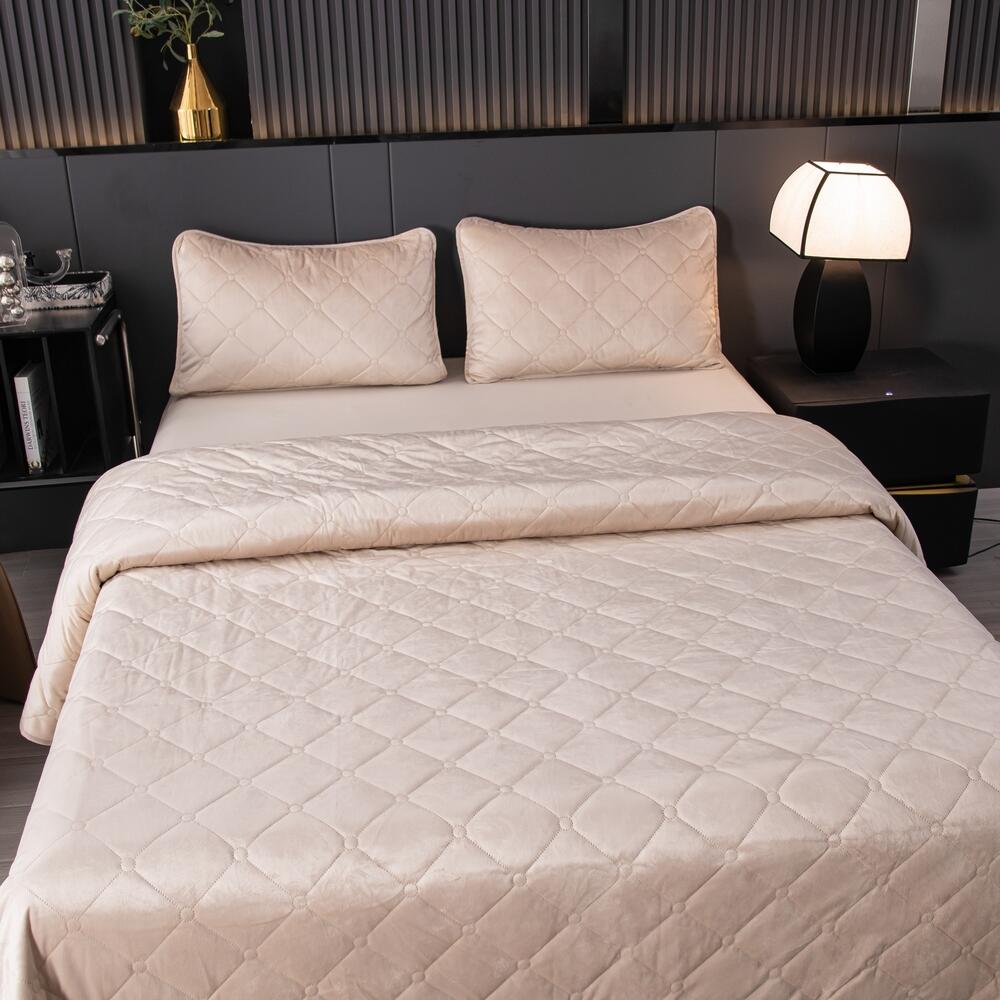 Велюровое покрывало с ромбовидной стежкой: мягкая текстура велюра и приятная цветовая гамма станут прекрасным дополнением интерьера вашей спальни. Кровать с таким покрывалом будет выглядеть стильно и дорого.