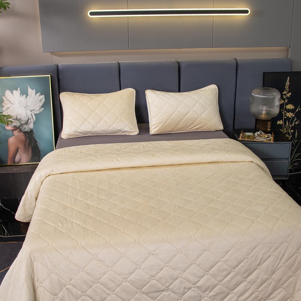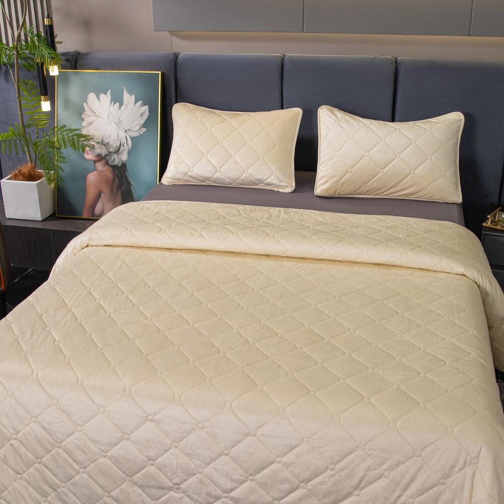 Велюровое покрывало с ромбовидной стежкой: мягкая текстура велюра и приятная цветовая гамма станут прекрасным дополнением интерьера вашей спальни. Кровать с таким покрывалом будет выглядеть стильно и дорого.