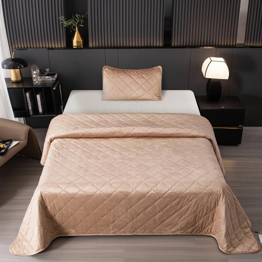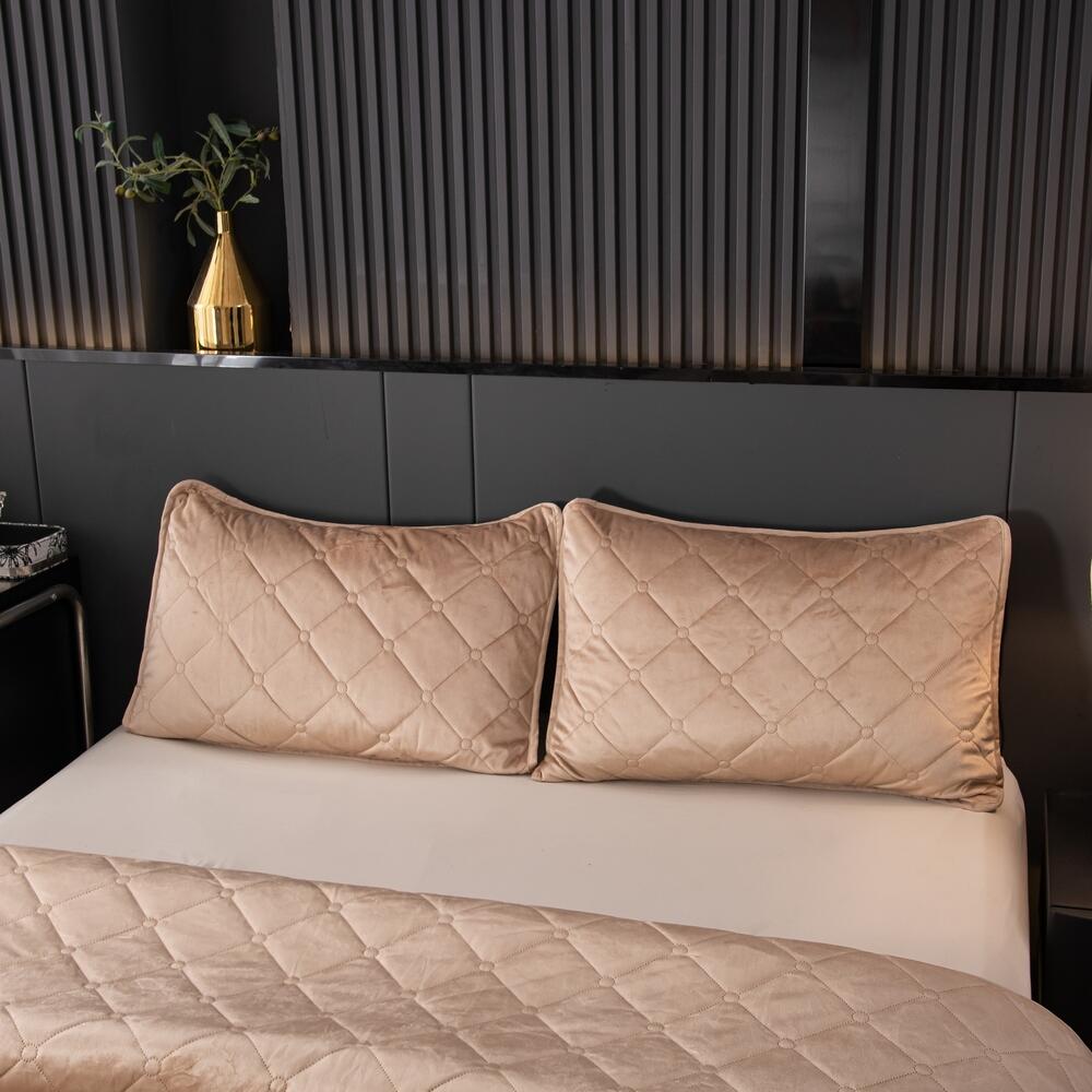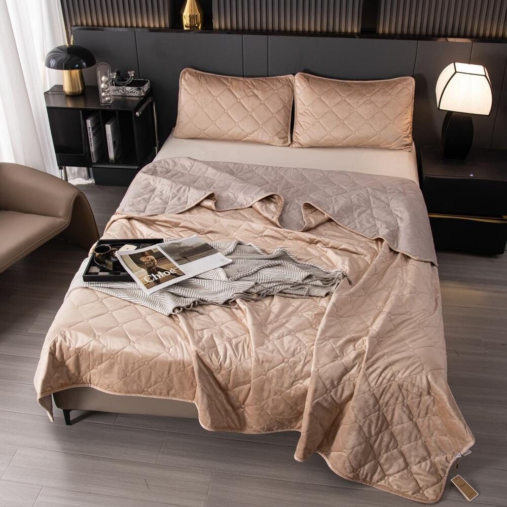 Велюровое покрывало с ромбовидной стежкой: мягкая текстура велюра и приятная цветовая гамма станут прекрасным дополнением интерьера вашей спальни. Кровать с таким покрывалом будет выглядеть стильно и дорого.