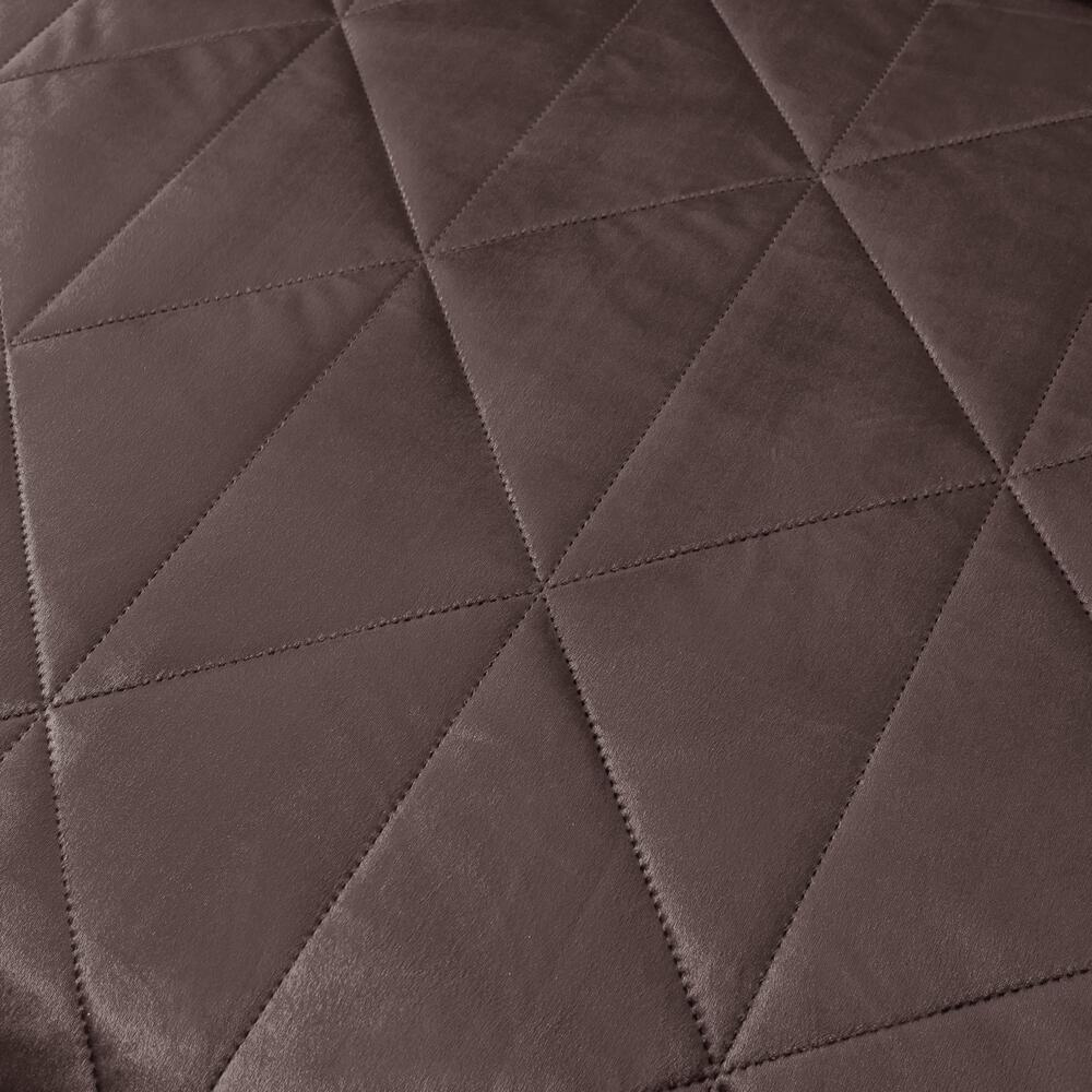 Геометрический узор на покрывале выполнен с использованием термостежки, что придаёт изделию особую изысканность и подчёркивает элегантность интерьера.