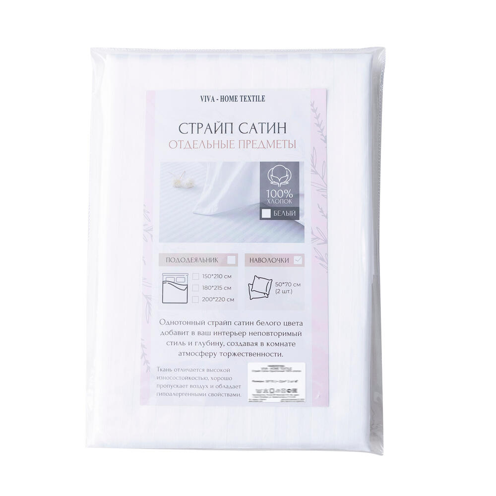 Технические характеристики Наволочки Страйп Сатин Однотонный Отель белый 100% Хлопок 1x1 N1CTH03657