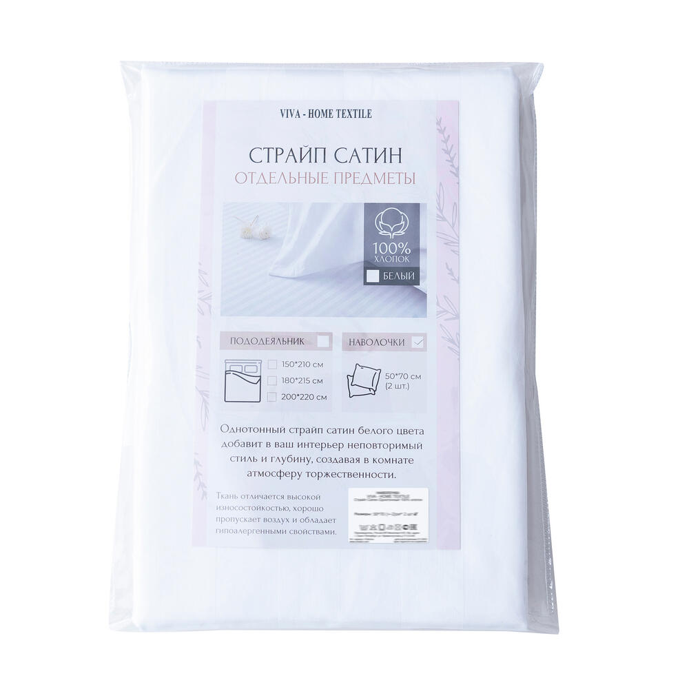 Технические характеристики Наволочки Страйп Сатин Однотонный Отель белый 100% Хлопок 3x3 N3CTH03757