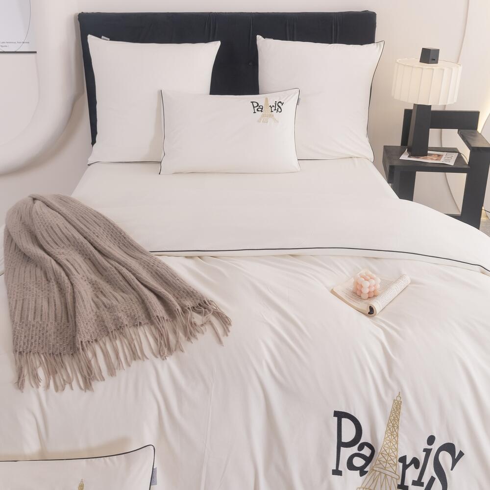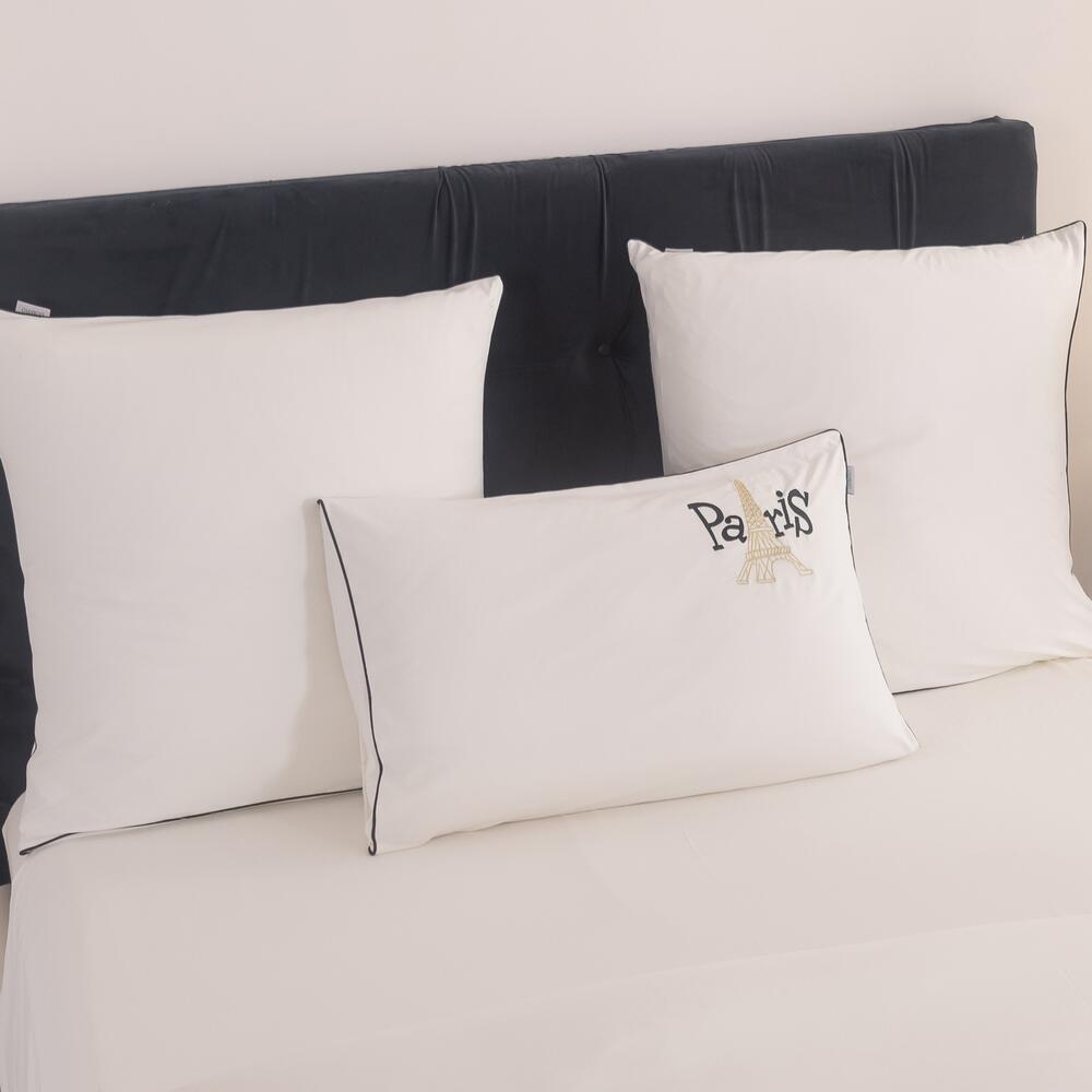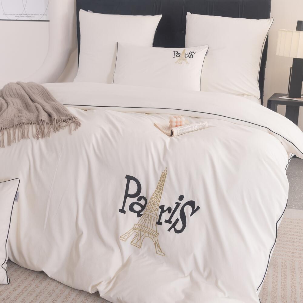 Дизайн дополняет элегантная вышивка с изображением Эйфелевой башни и надписью Paris, а изящный кант по периметру подчёркивает утончённость каждого комплекта.