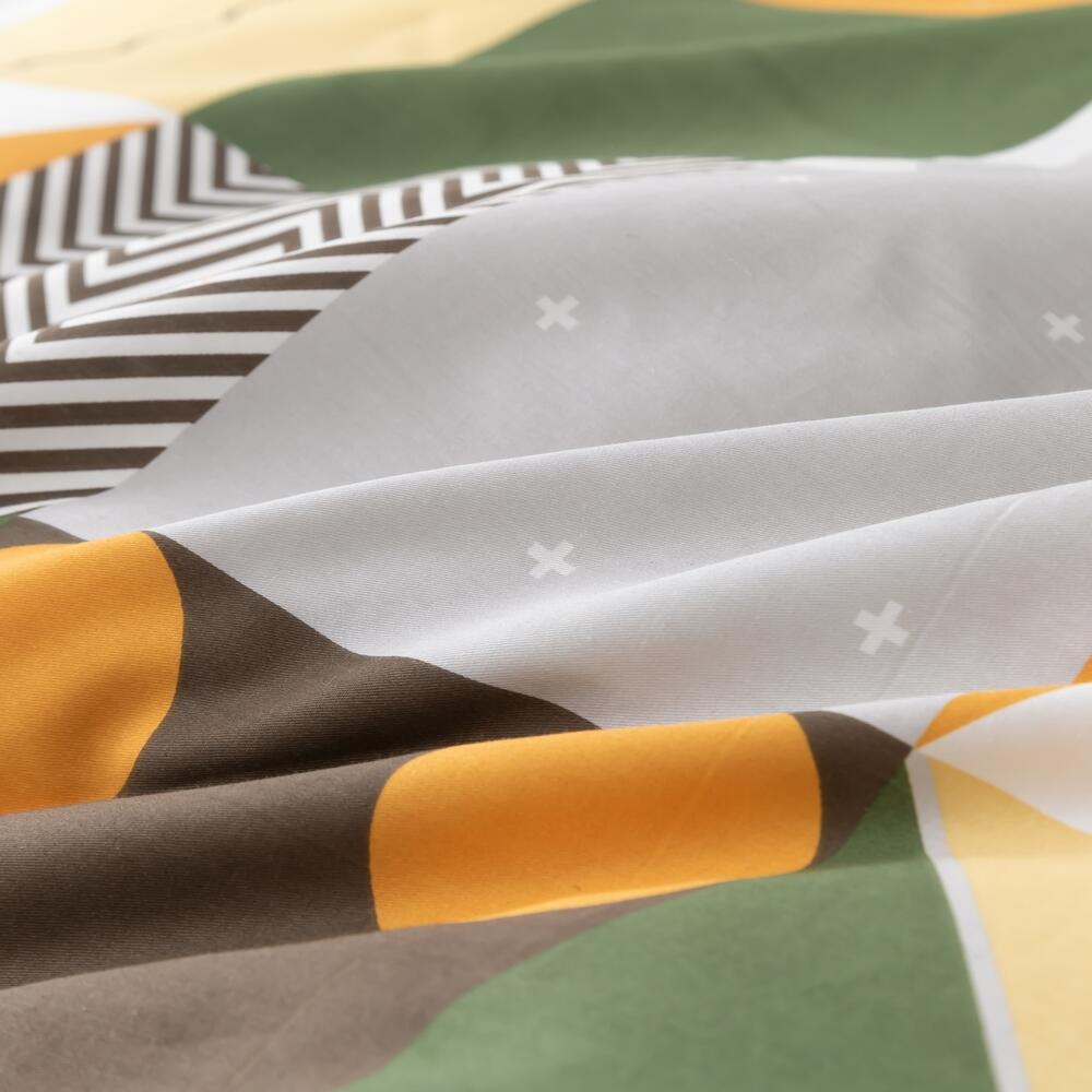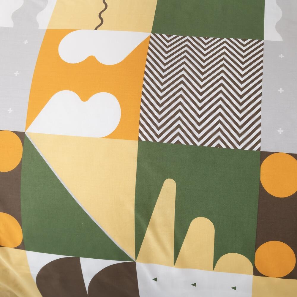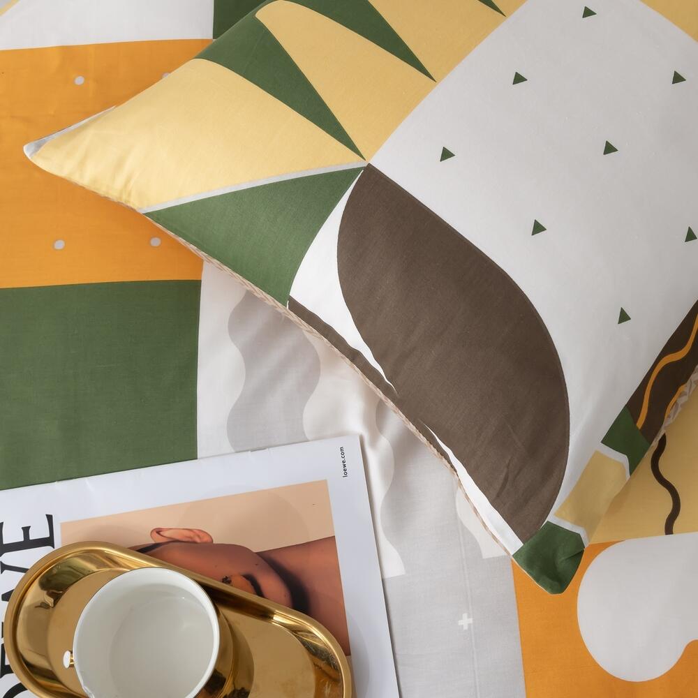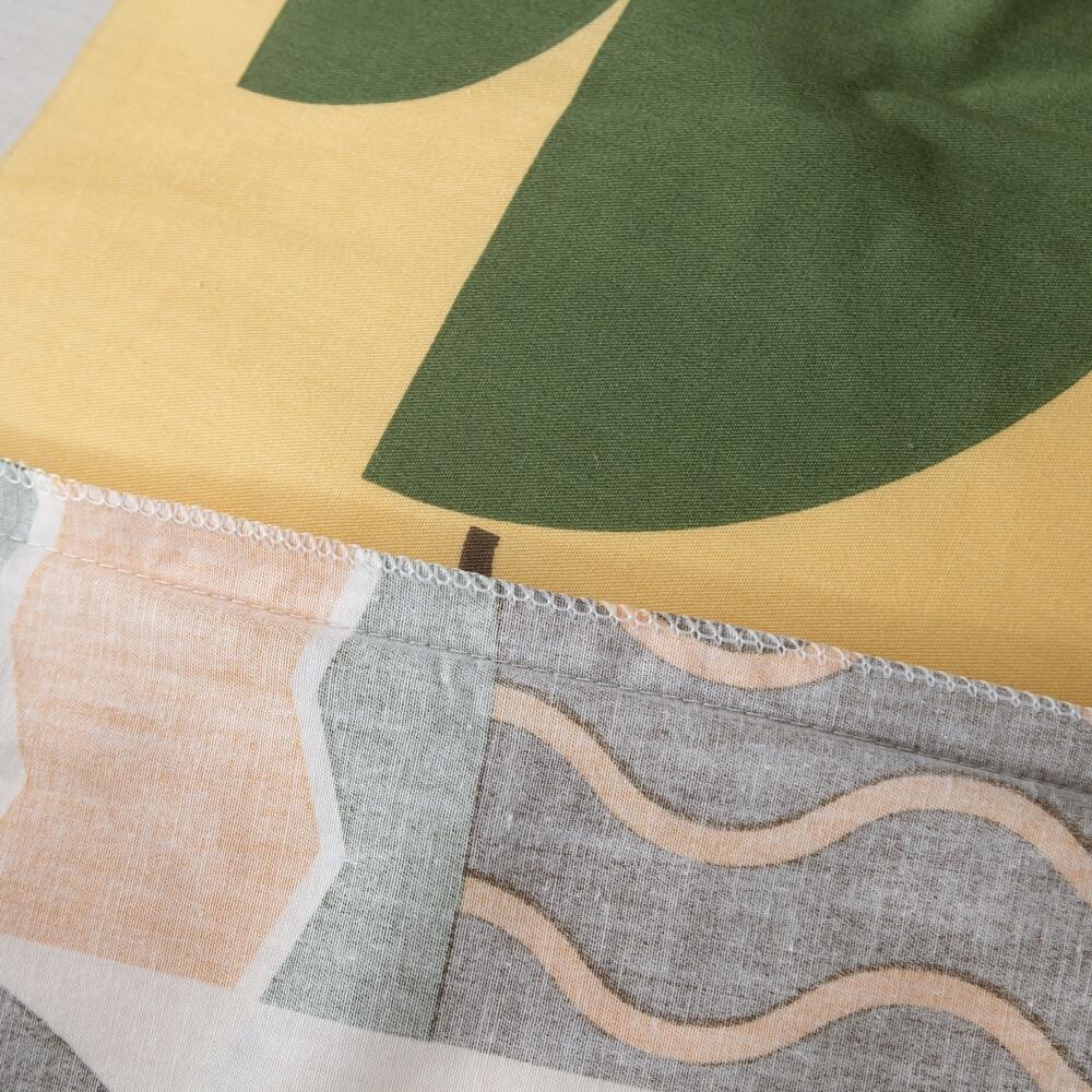 Ткань компаньон: Наволочки с разных сторон разной расцветки, пододеяльник с разных сторон разного цвета, простыня такого же цвета, как низ пододеяльника.