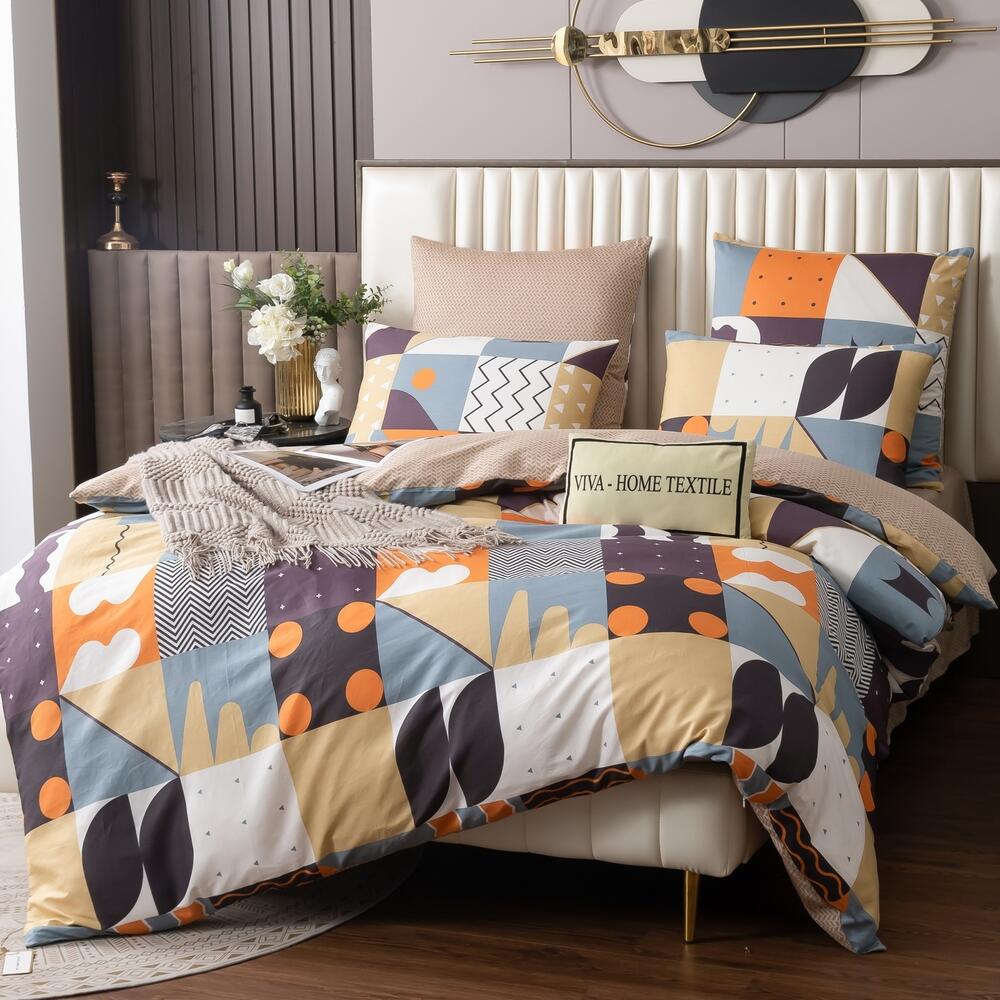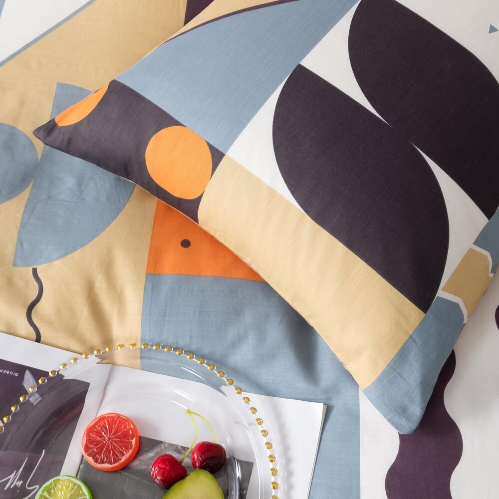 Ткань компаньон: Наволочки с разных сторон разной расцветки, пододеяльник с разных сторон разного цвета, простыня такого же цвета, как низ пододеяльника.