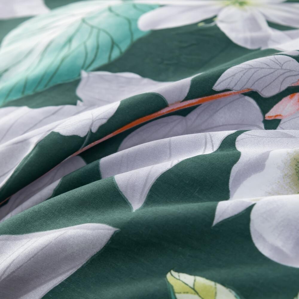Для более комфортного использования пододеяльник и наволочки снабжены скрытыми молниями. Простынь сшита из целого полотна без шва посередине, а большие размеры простыни решают проблему с заправкой постели.