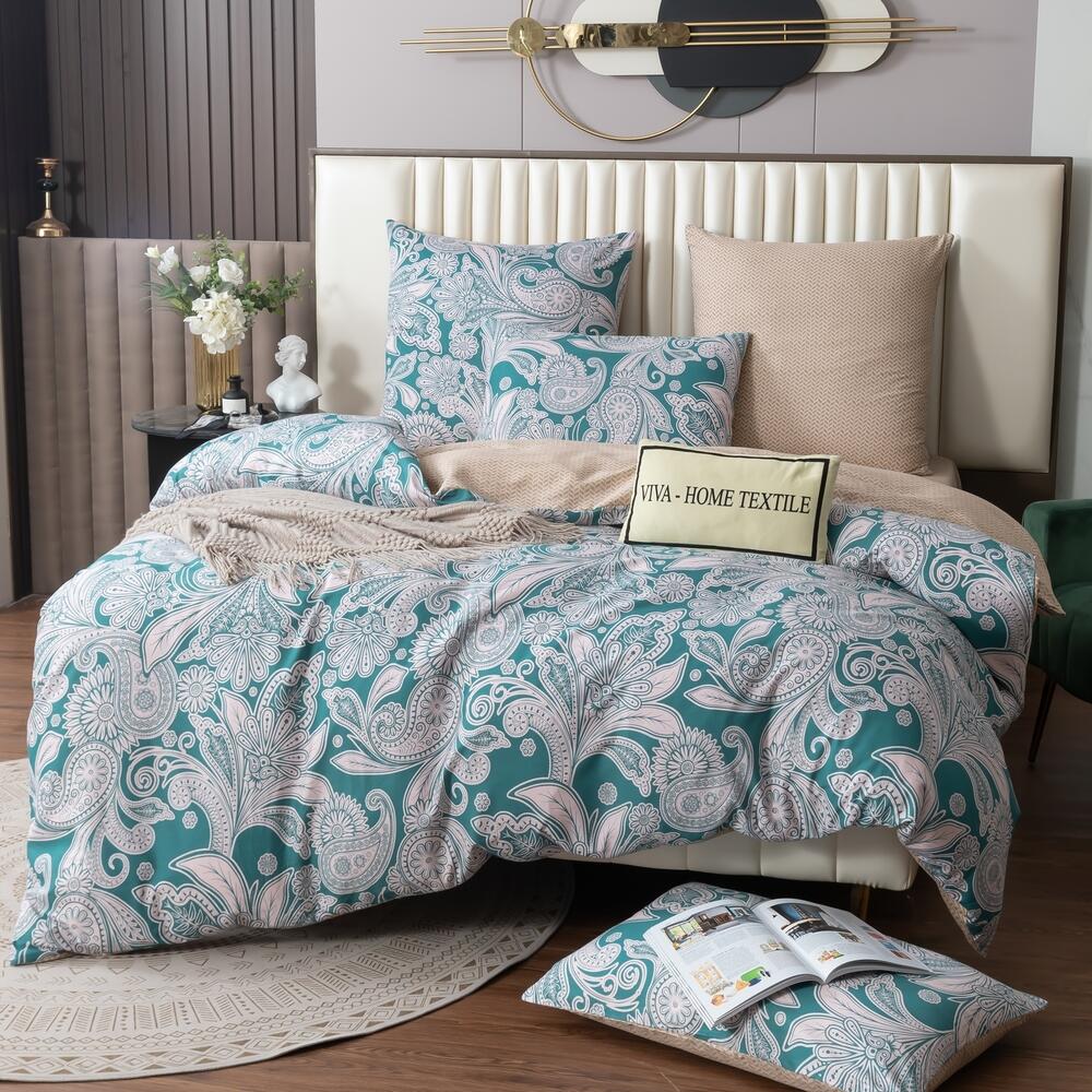 Ткань компаньон: Наволочки с разных сторон разной расцветки, пододеяльник с разных сторон разного цвета, простыня такого же цвета, как низ пододеяльника.