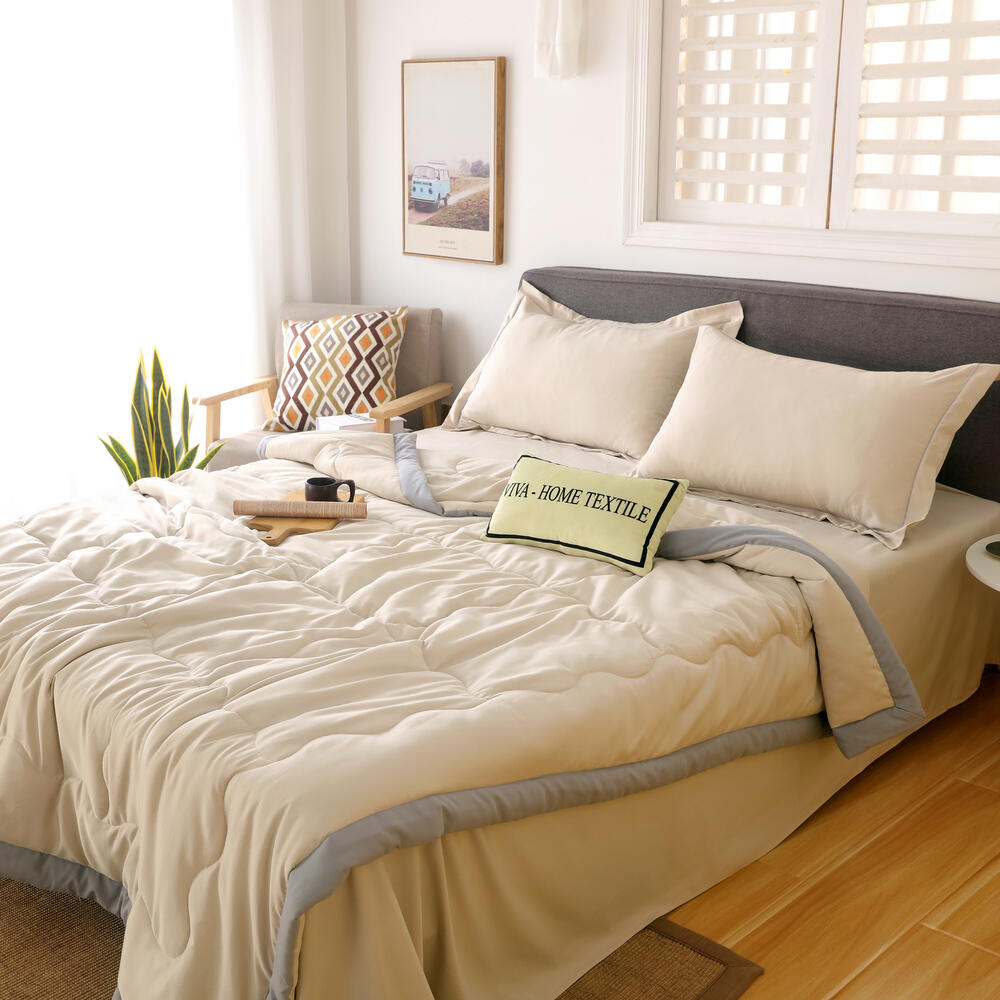 Стеганое одеяло-покрывало из бамбукового волокна прекрасно подходит для людей с чувствительной кожей. Антибактериальные свойства бамбукового волокна не снижаются даже после нескольких десятков стирок. Зимой под таким одеялом тепло и уютно, а летом, благодаря отличной воздухопроницаемости, совсем не жарко. Бамбуковые волокна прекрасно впитывают влагу и быстро сохнут благодаря пористой структуре.