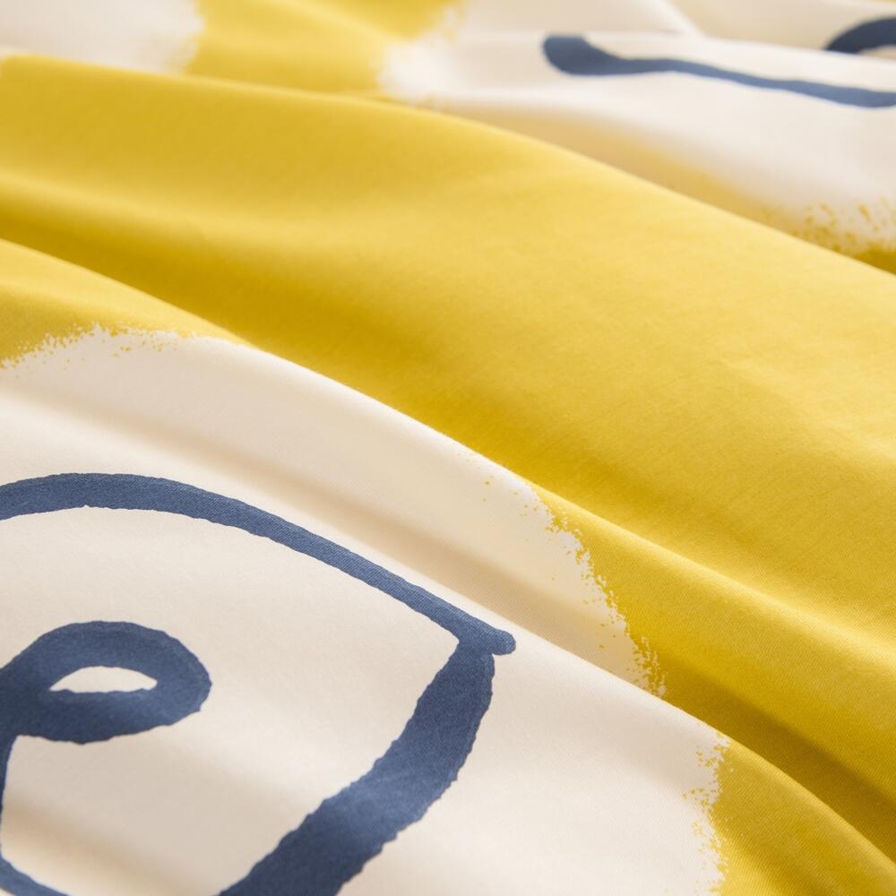 Ткань компаньон: Наволочки с разных сторон разной расцветки, пододеяльник с разных сторон разного цвета, простыня такого же цвета, как низ пододеяльника.