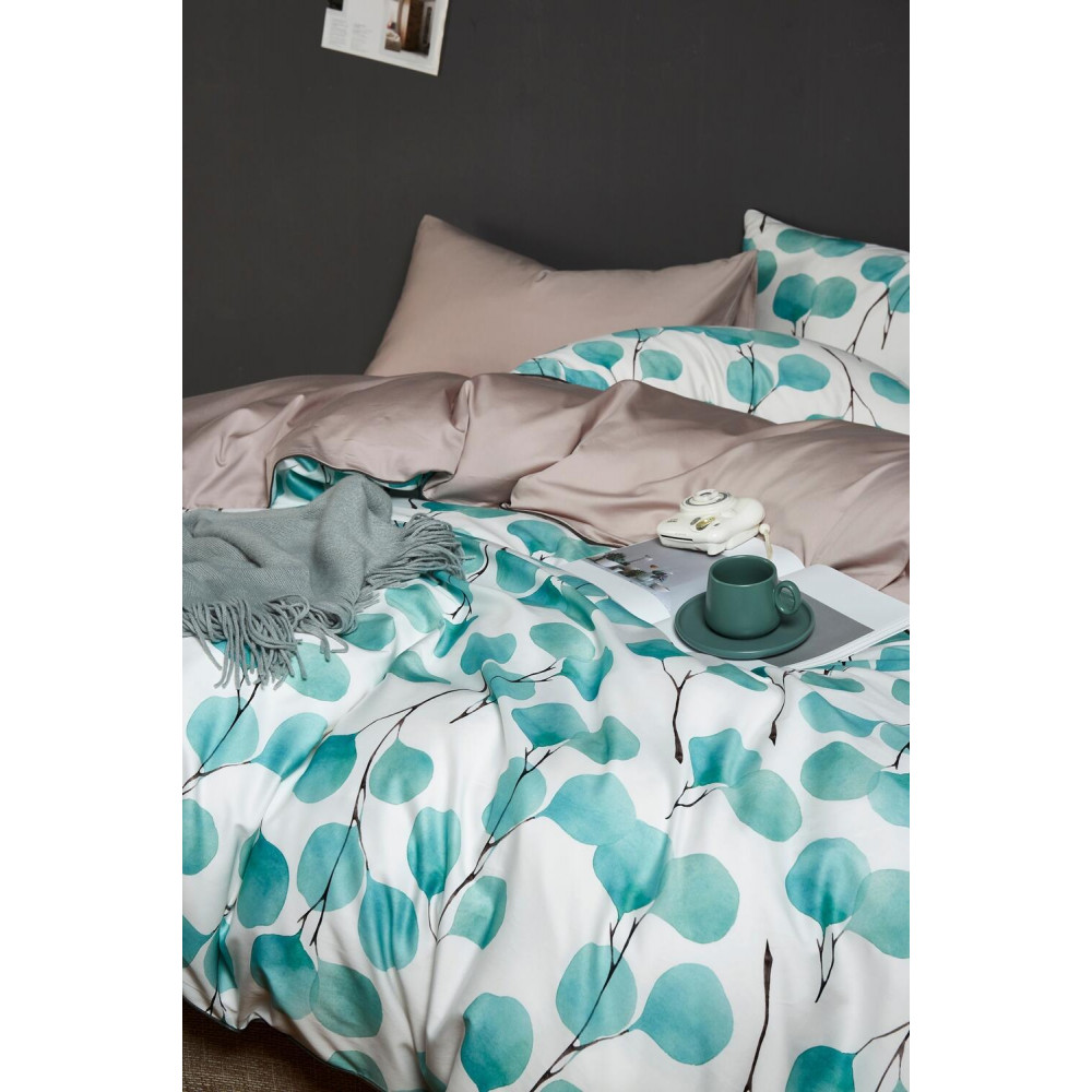 Ткань компаньон: Наволочки 50*70 с разных сторон разной расцветки, наволочки 70*70 однотонные в цвет простыни, пододеяльник с разных сторон разного цвета, простыня однотонная такого же цвета, как низ пододеяльника.