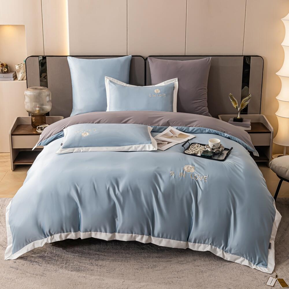Немаловажными преимуществами комплектов также являются: большой размер простыни, наличие 4-х наволочек во всем размерном ряду коллекции, а также широкий лаконичный кант по периметру пододеяльника и наволочек.