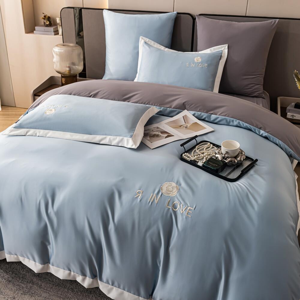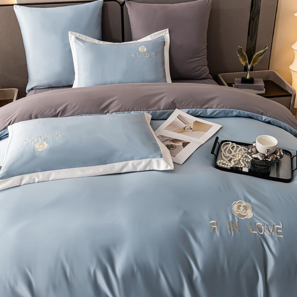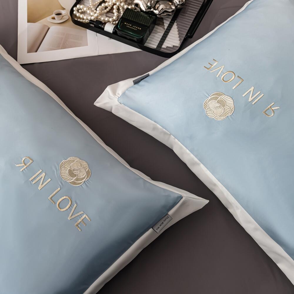 Каждый комплект украшен элегантной вышивкой с цветком и фразой "Я IN LOVE". Это придает постельному белью особый шарм, делая его прекрасным подарком для любимых.