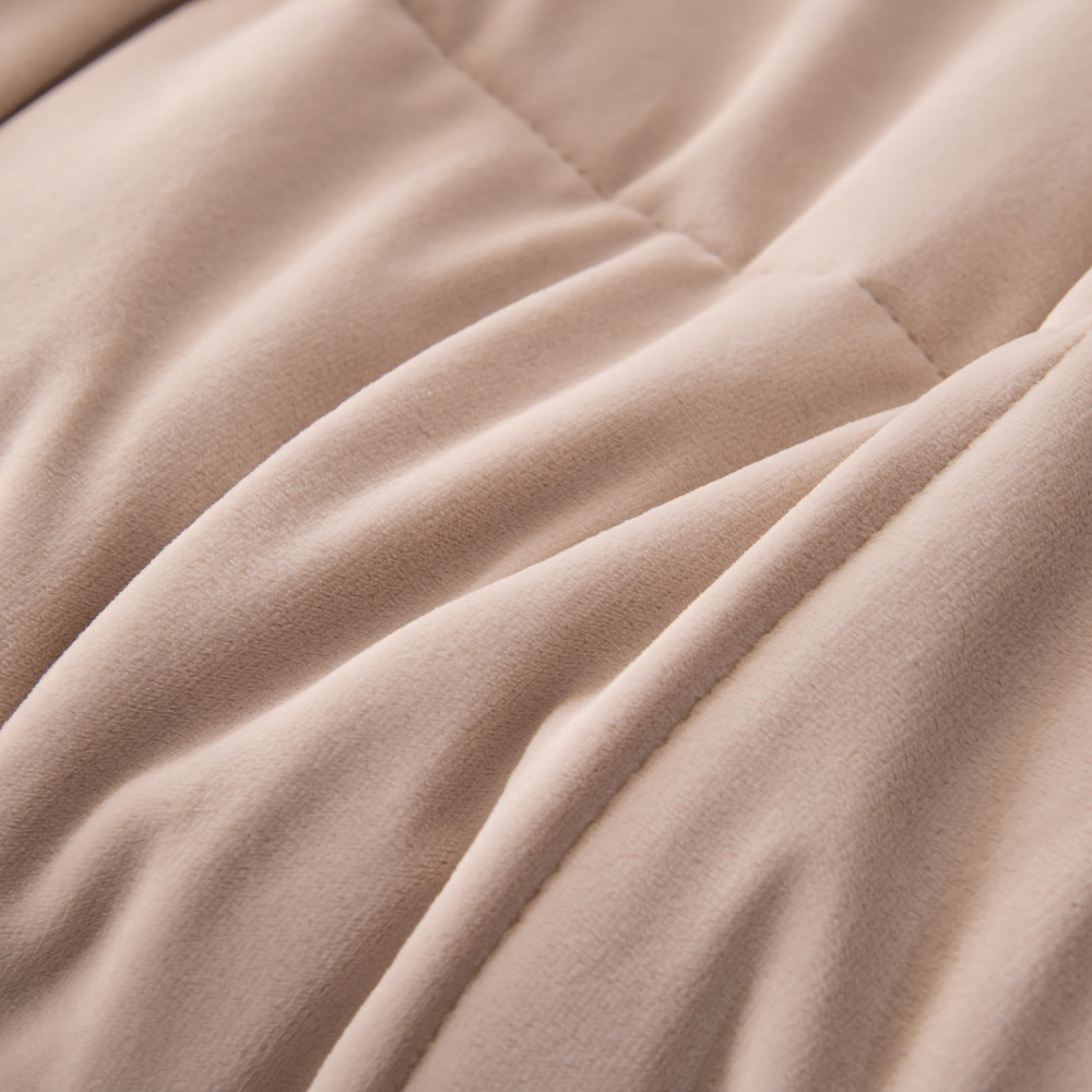 Одеяло выполнено с изысканной геометрической стёжкой и оформлено бархатным кантом. Верхняя сторона: мягкий велюр, придающий комплекту благородный вид и особую уютность, нижняя сторона: сатин из 100% хлопка, обеспечивающий естественную воздухопроницаемость и комфорт во время сна. Наполнитель: современное 100% эковолокно микрогель, лёгкое, гипоаллергенное и сохраняющее форму даже после многократных стирок. Зимой под таким одеялом тепло и уютно, а летом благодаря отличной циркуляции воздуха не будет жарко.