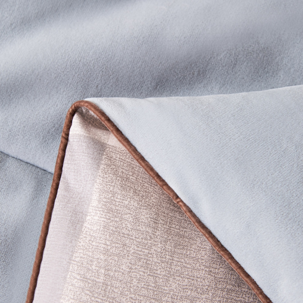 В комплект входят четыре наволочки: 50x70 см (2 шт) с запАхом (кармашком) выполнены из сатина 100% хлопка, с ушками и широким кантом по периметру; 70x70 см (2 шт) на молнии - верх из мягкого велюра, низ из сатина 100% хлопка, оформлены бархатным кантом.